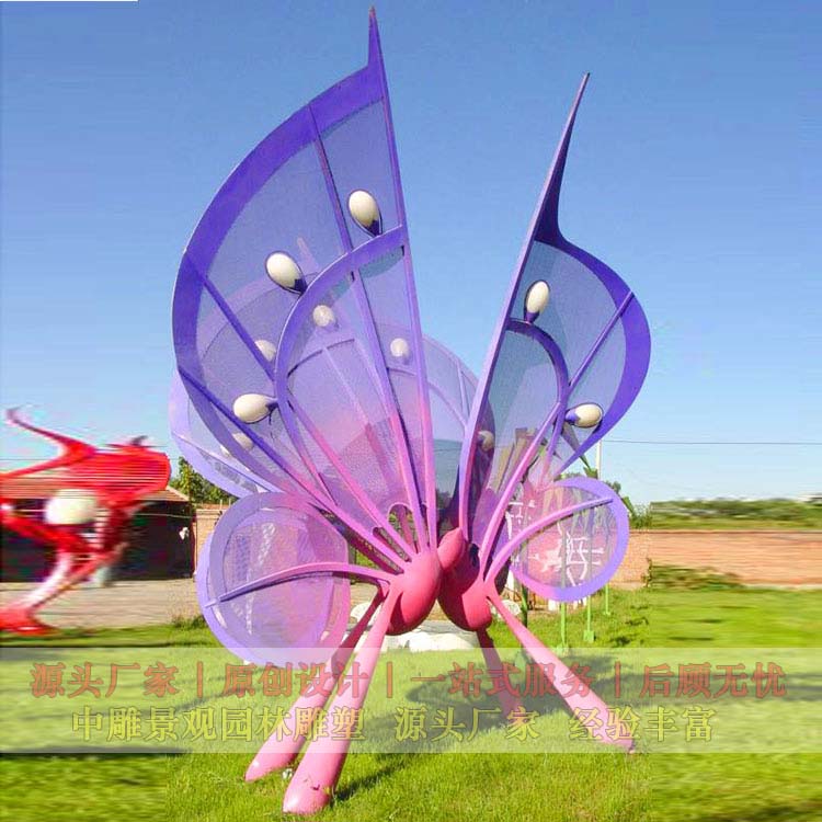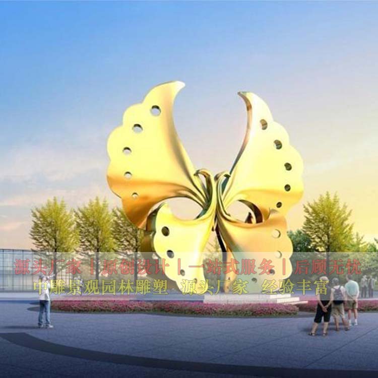景观园林雕塑 不锈钢蝴蝶雕塑公园作为城市中非常受欢迎的场所之一,我们每个人都去过公园,并且对于公园的环境都是非常了解的,公园中种植了树林、建设了小桥、假山、河流等等,因此,公园的环境都是非常优美的,并且凭借优美的环境也一直在城市中盛行。