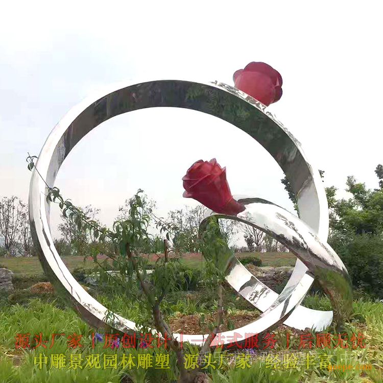 戒指是爱情的象征,相爱的人互赠戒指寓意把对方牢牢地拴住,我们知道,情侣结婚的时候,新郎给新娘带上戒指是一个必不可少的环节,给新娘带上戒指,就是对新娘一生的承诺,这是一个庄重的仪式。不锈钢戒指雕塑象征爱情的坚贞不渝,硕大的戒指一定会异形女性的目光,让他们为之疯狂。