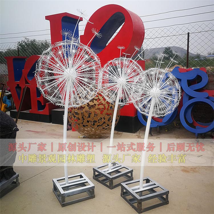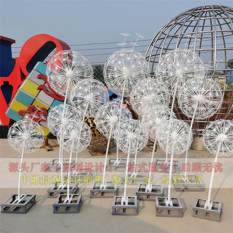 不锈钢蒲公英雕塑要想把蒲公英那种毛茸茸的感觉做出来是需要下一番功夫的,漂亮的不锈钢蒲公英雕塑加上灯带,晚上接通电源,那叫一个漂亮!